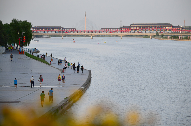 陕西咸阳市民在市区渭河岸边散步